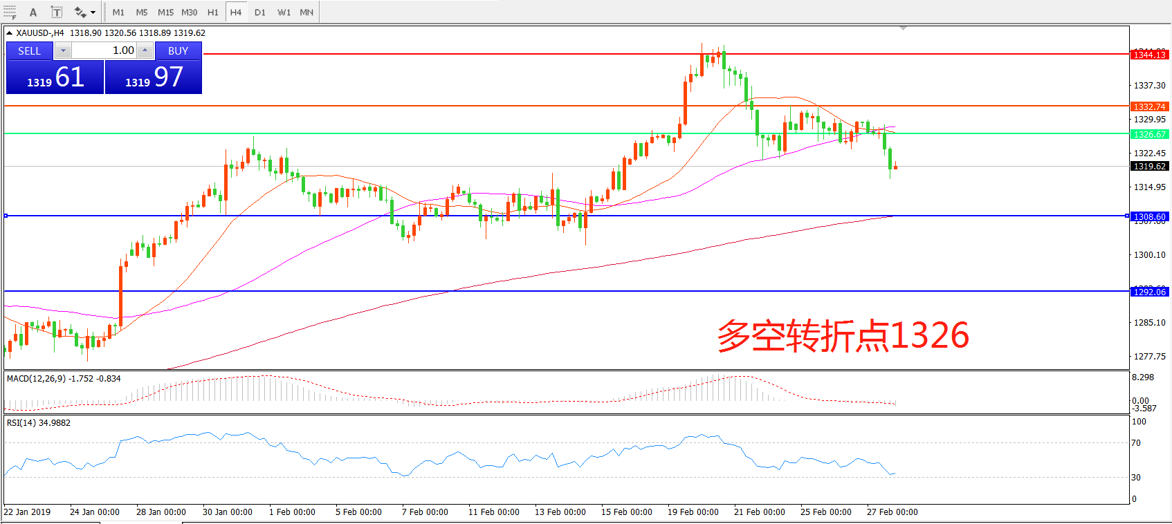 交易策略:在1326.00之下看跌,目标1308.00 1292.00