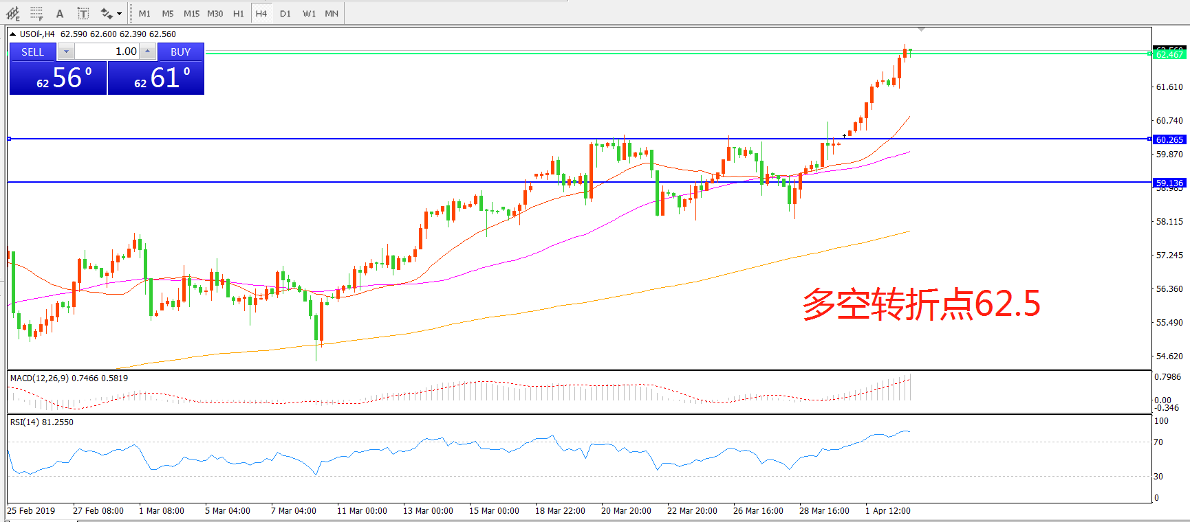 多空转折点:62.50