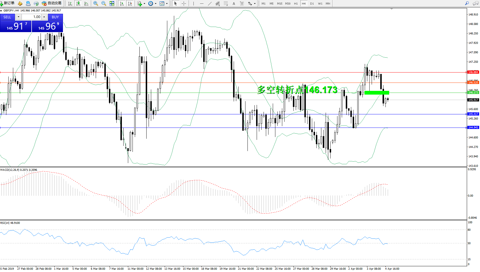 交易策略:146.173下方看跌,目标145.417144.945