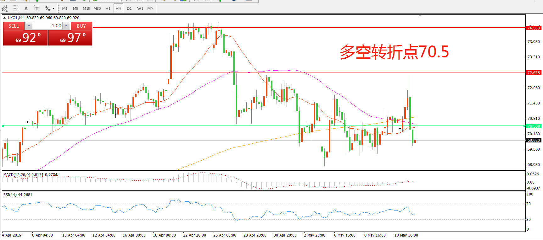 交易策略:在70.50之下看跌,目标68.50    66.00