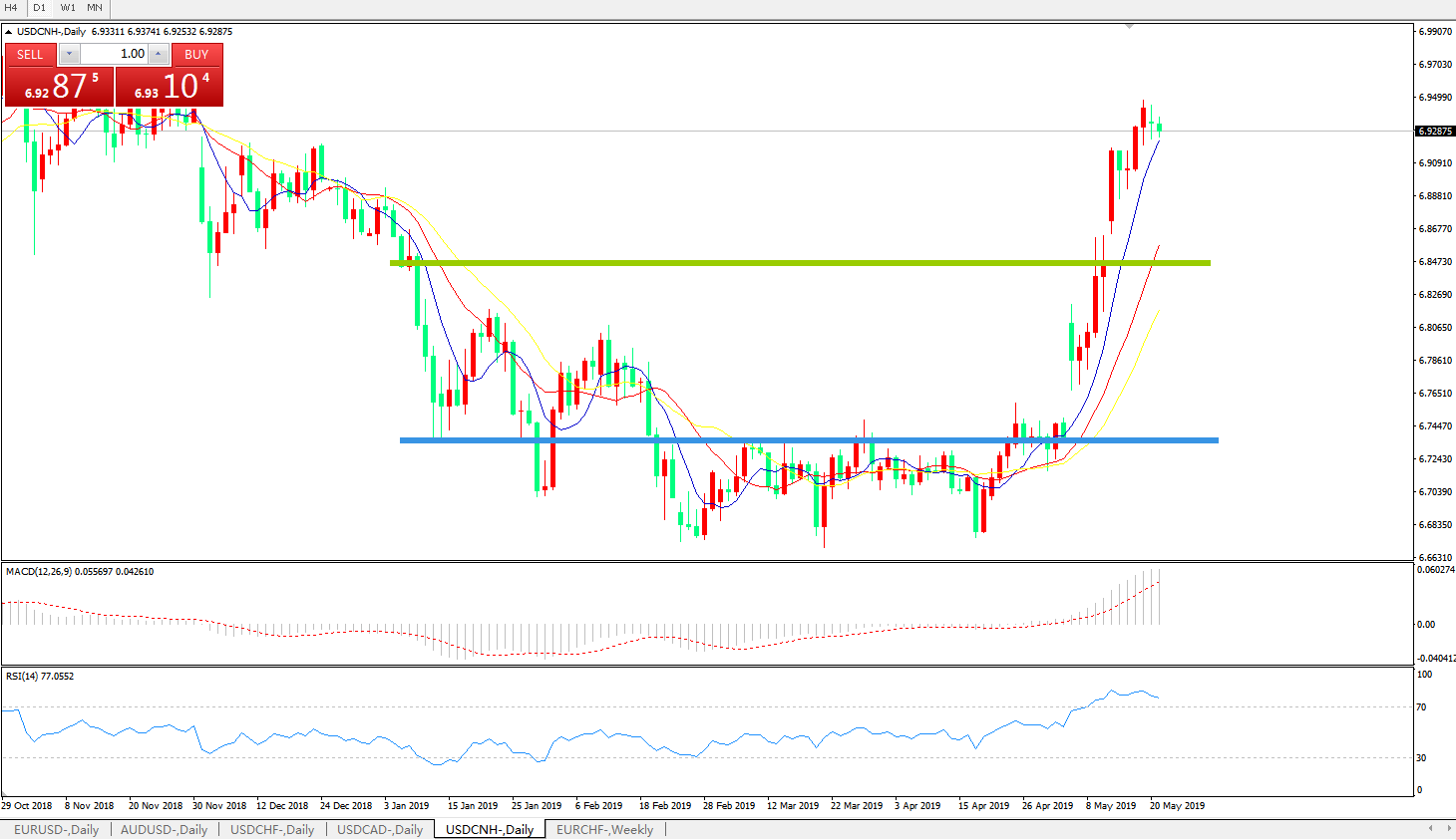 技术面简析:日线均线呈有序多头排列看多,MACD0轴上方运行且动能柱0轴上方持续放量RSI超买区域有下行迹象,汇价强力上攻后维持整理态势,预计短期汇价有进一步上行空间,中期重点关注中美贸易争端后续进展