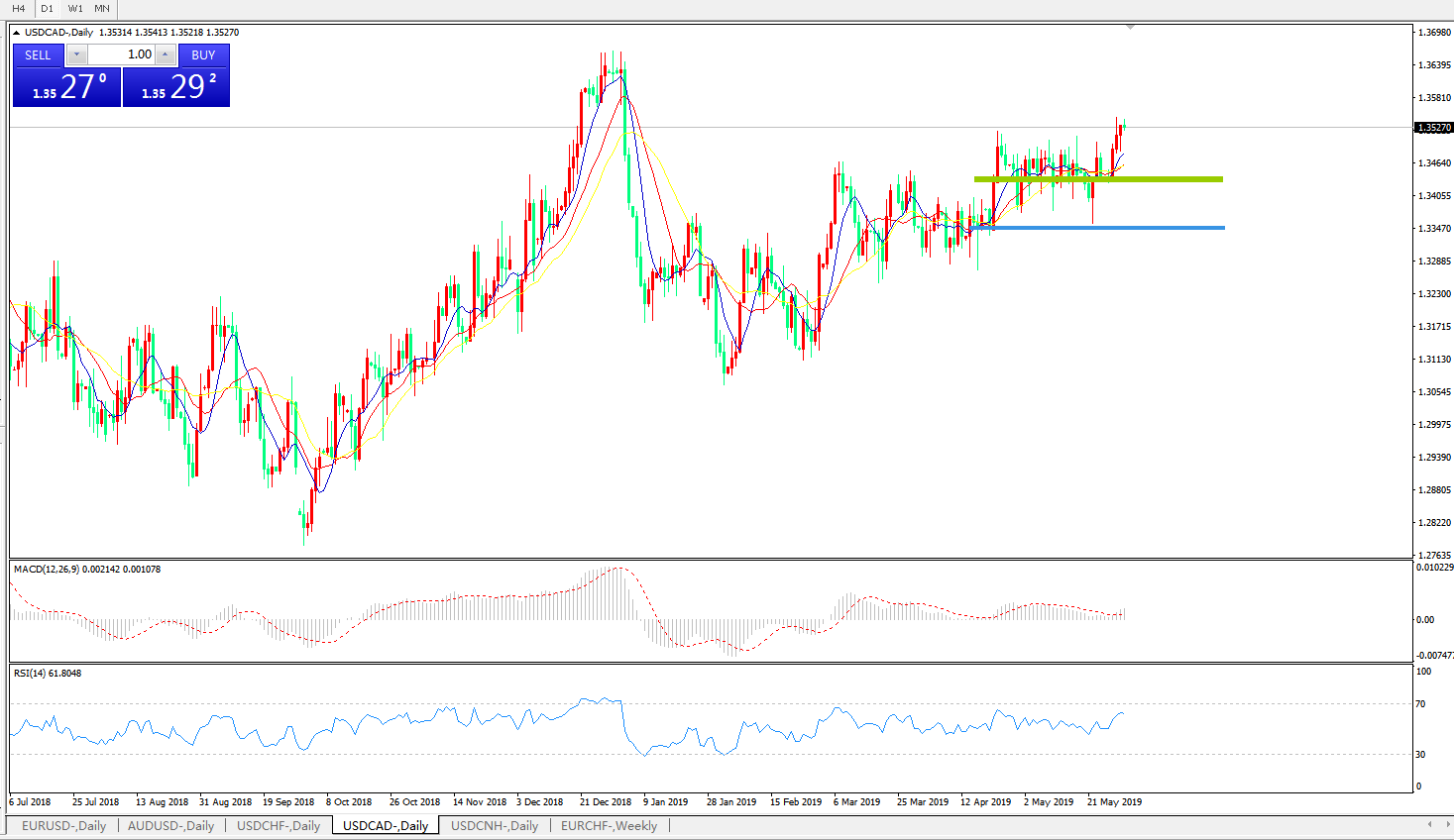 美元兑加元USDCAD    日线