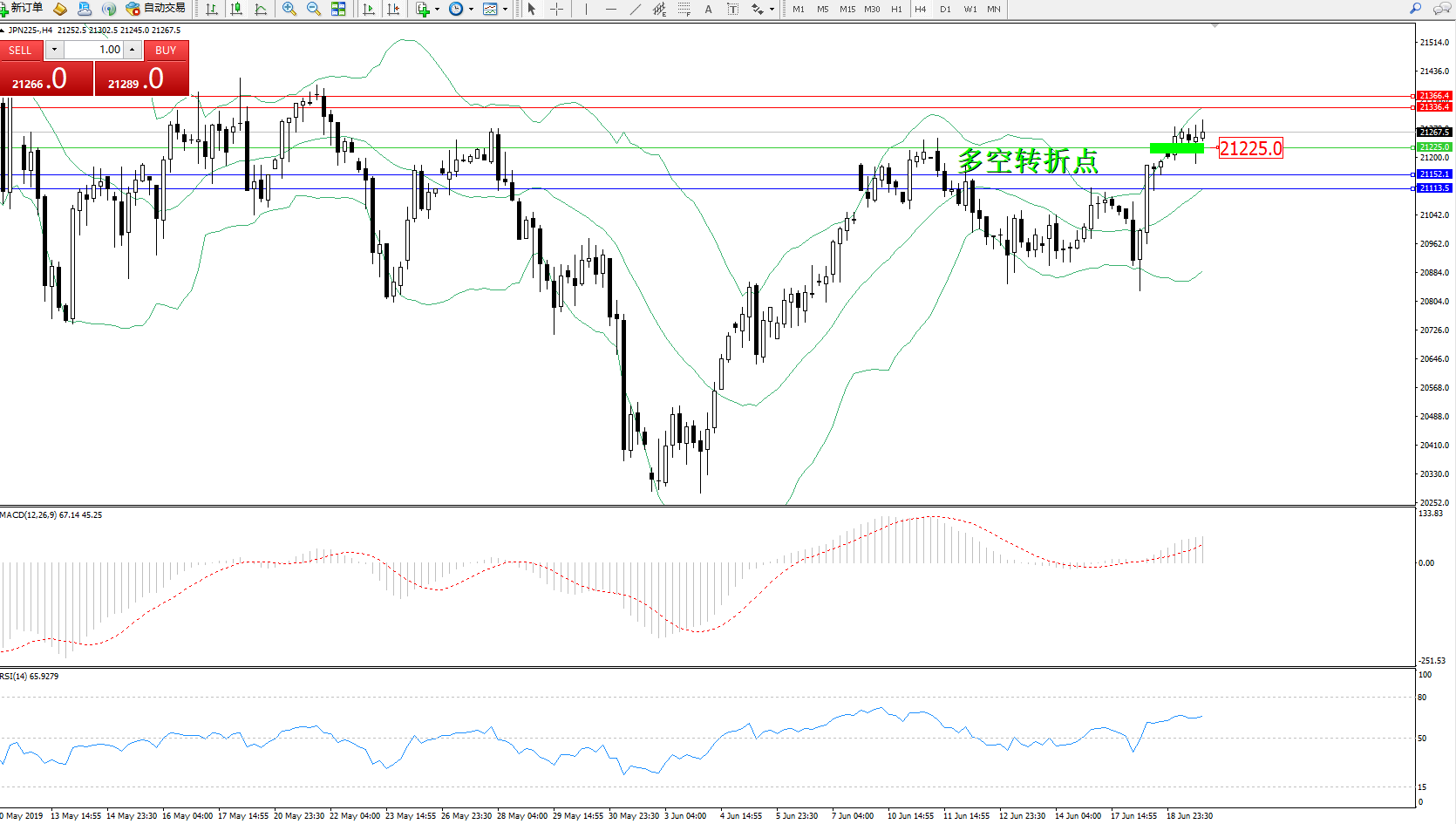 日经225指数619日(周三)收盘上涨360.79点,涨幅1.72%,报21333.50点。美股微涨,美联储利率决议不变,加息点阵图首次发出降息信号,但尚未真正讨论降息规模,今年经济表现合理,GDP增速预期显示增长前景模糊。关注日本央行公布利率决议、召开发布会。