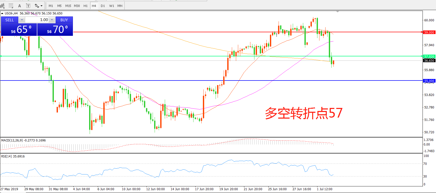 交易策略:在57.00之下看跌,目标55.00 50.00
