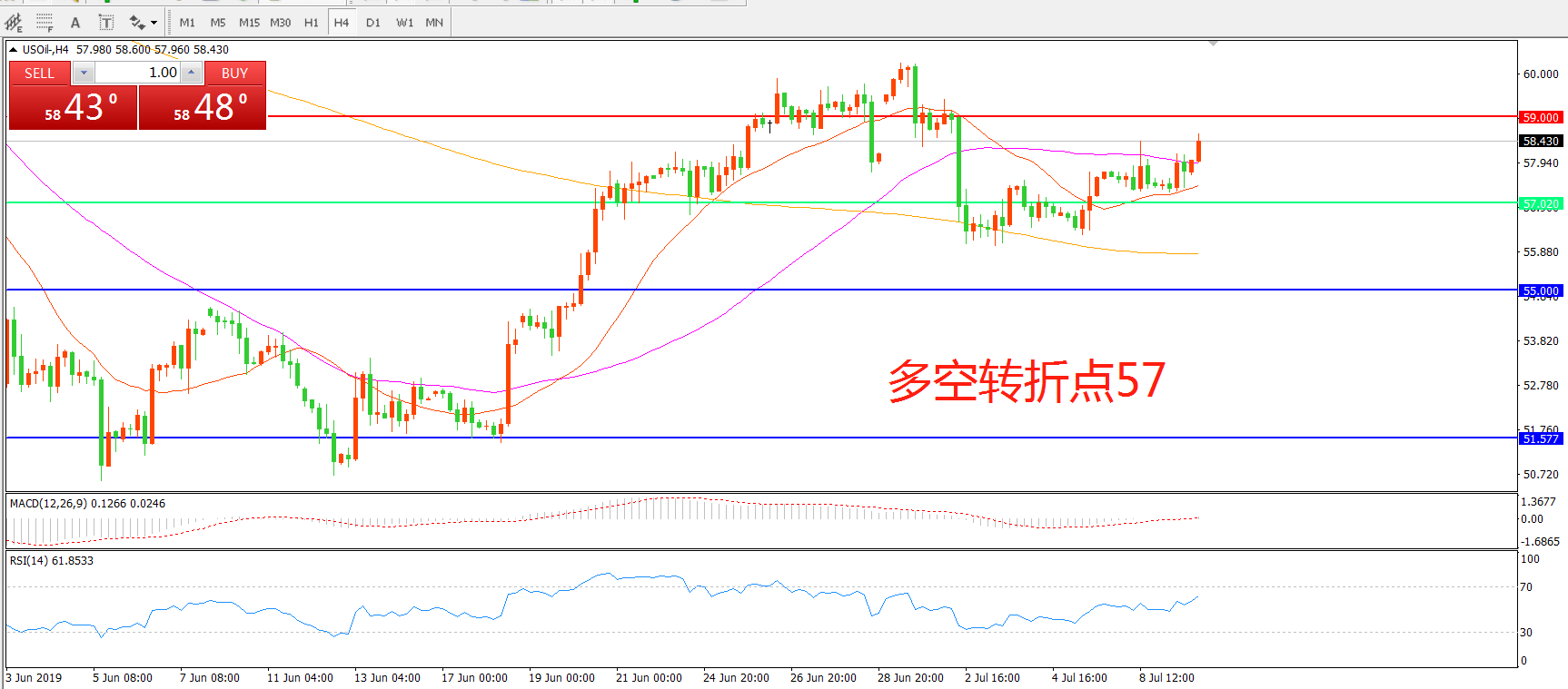 交易策略:在57.00  之上看涨,目标59.00    61.00