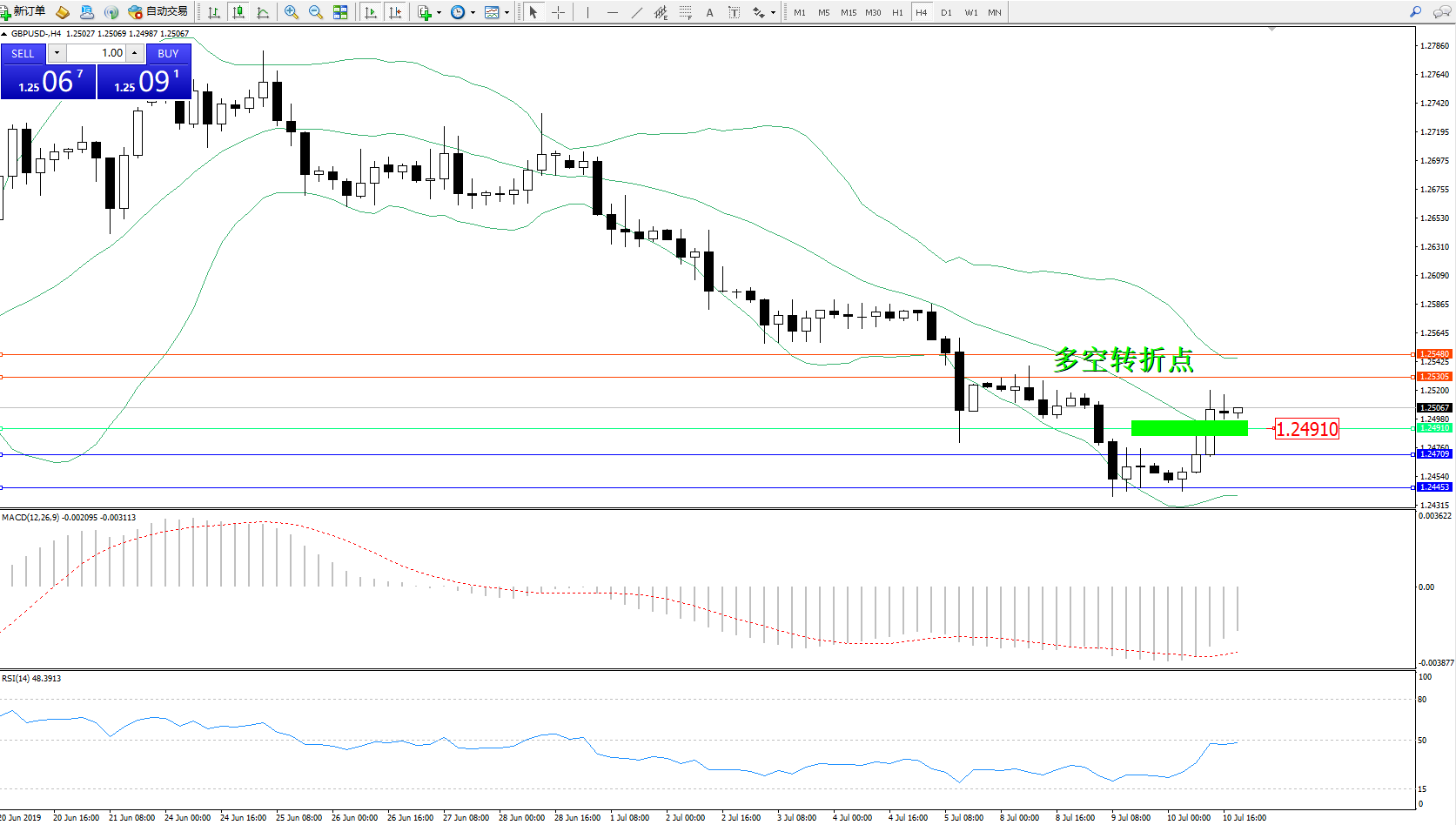 英镑美元GBPUSD ——4小时K线图显示: