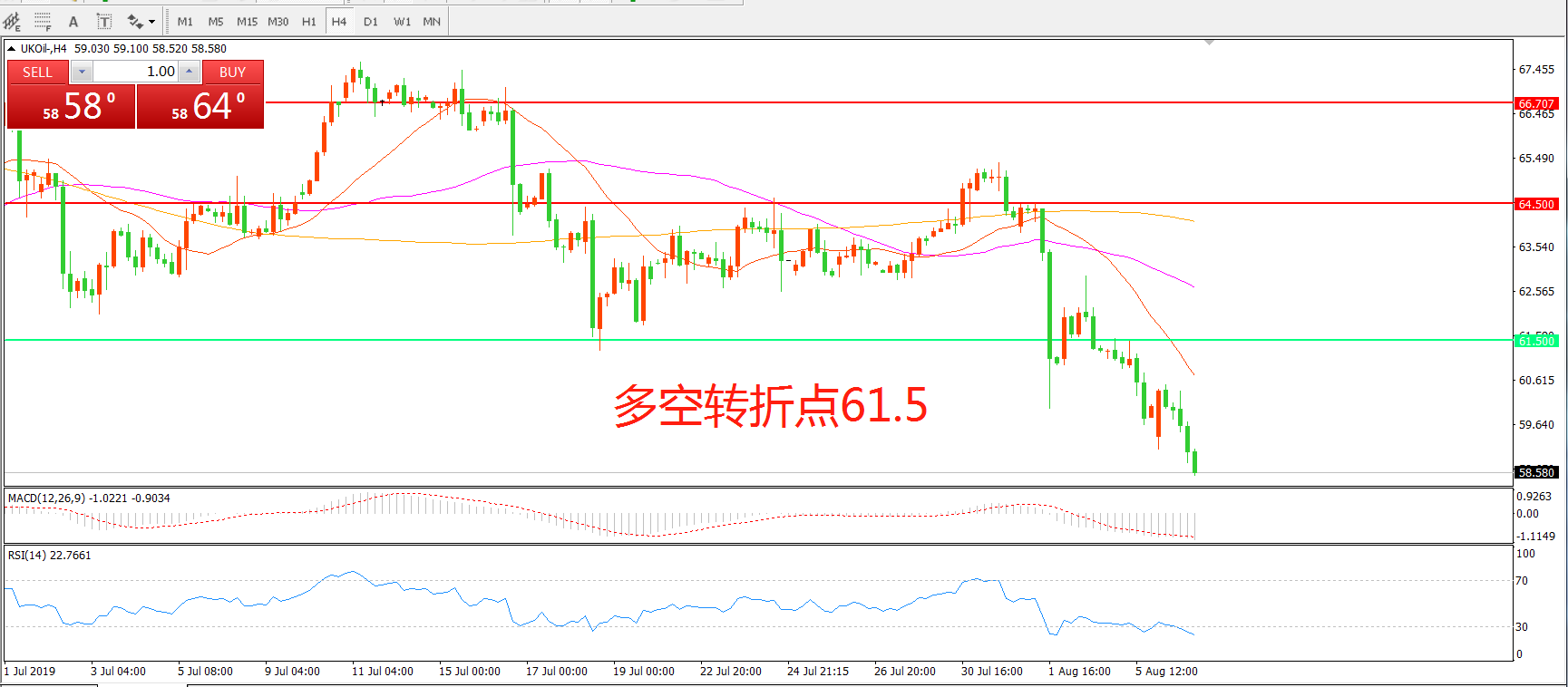 交易策略:在61.50之下看跌,目标57.50   53.50