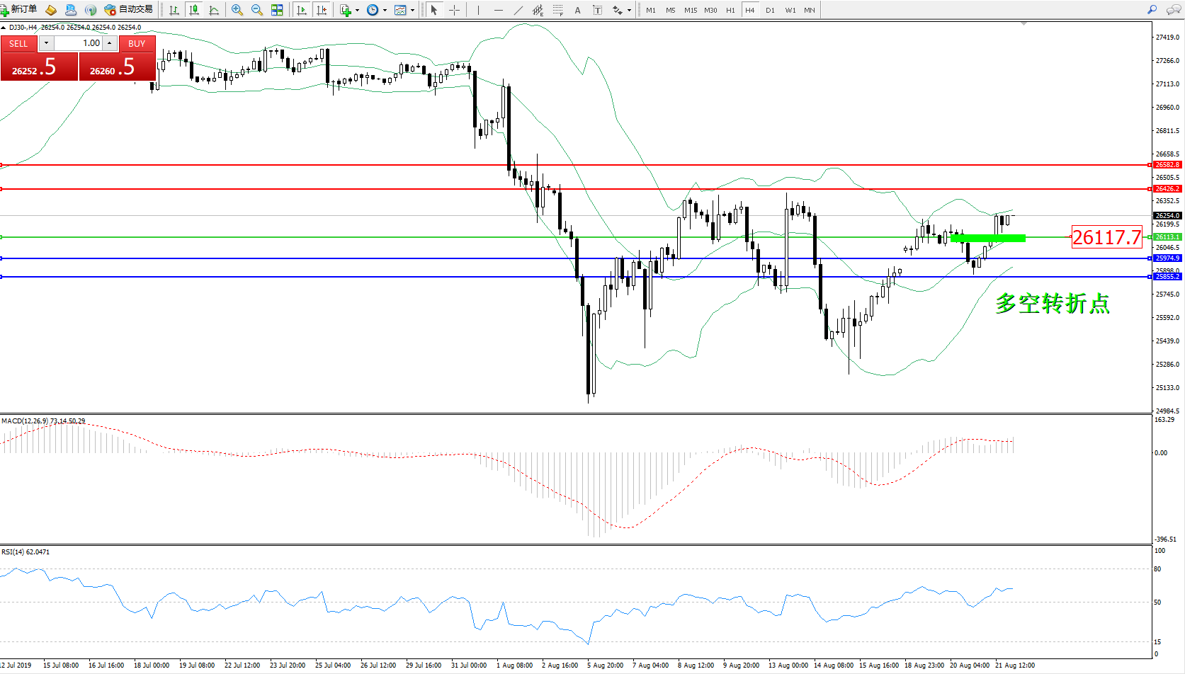 道琼斯指数8月21日(周三)收盘上涨240.30点,涨幅0.93%,报26202.73点。北京时间周四(8月22日)凌晨02:00,美联储公布的7月会议纪要显示,美联储决策者一致认为,在决定未来是否降息方面,“保持可选性很重要”;投资者关注美联储7月会议记录,以寻找未来降息的线索;美联储周三公布的会议记录显示,在上次会议上就更大幅降息进行了辩论,不过政策制定者一致希望避免给外界留下处在进一步降息路径上的印象;美国总统特朗普周三表示,美国在与中国和其他贸易协定方面做得很好,同时他向美联储施压,要求其降低利率,称其政策正在阻碍美国经济增长,降低美国的经济竞争力;美国股市普遍上涨,此前公布了乐观的零售企业财报;美国公债收益率上升,因股市上涨反映出风险人气改善。