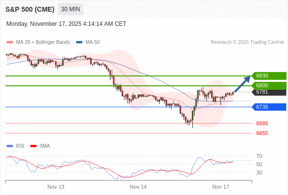 在 6735 之上,看涨,目标价位为 6800 ,然后为 6830 。