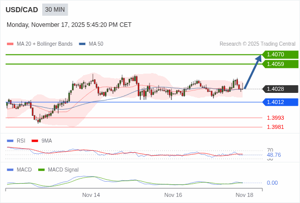 美元/加元 当日内 : 目标为 1.4070。