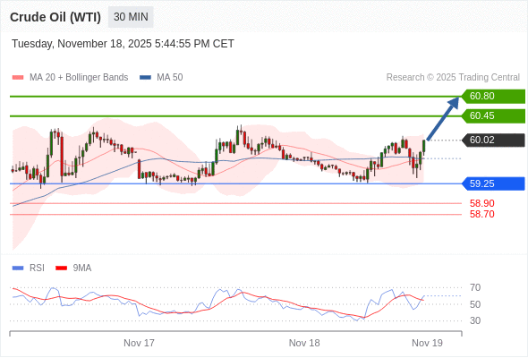在 59.25 之上,看涨,目标价位为 60.45 ,然后为 60.80 。