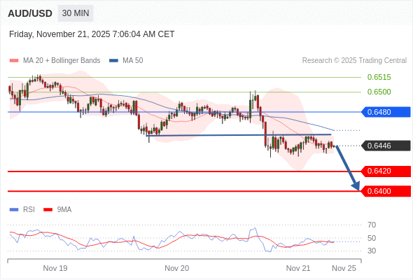 在 0.6480 之下,看跌,目标价位为 0.6420 ,然后为 0.6400 。