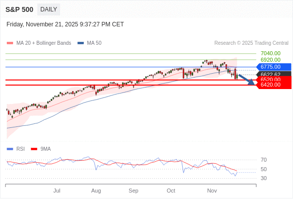 S&P 500 短线: 下跌趋势。