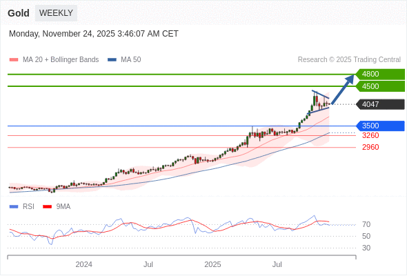 在 3500 之上,看涨,目标价位为 4500 ,然后为 4800 。