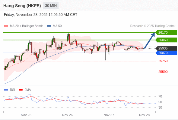 在 25870 之上,看涨,目标价位为 26060 ,然后为 26170 。