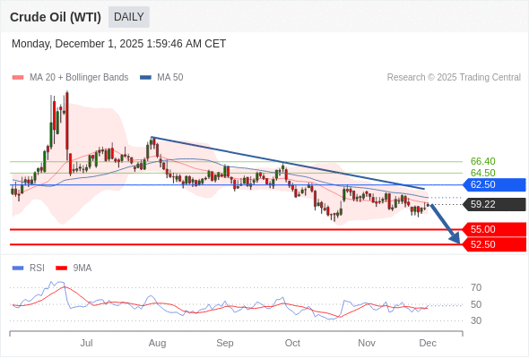 交易策略: 在 62.50 之下,看跌,目标价位为 55.00 ,然后为 52.50 。