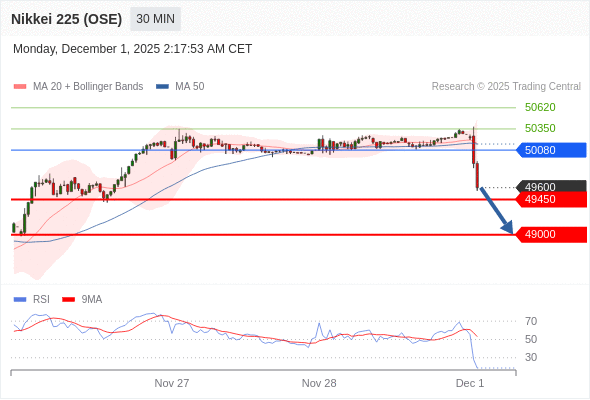 在 50080 之下,看跌,目标价位为 49450 ,然后为 49000 。