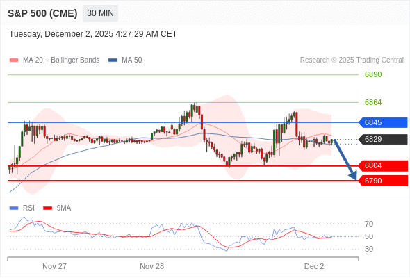 在 6845 之下,看跌,目标价位为 6804 ,然后为 6790 。