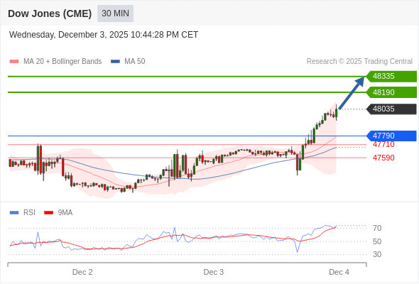在 47790 之上,看涨,目标价位为 48190 ,然后为 48335 。