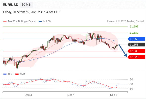 在 1.1665 之下,看跌,目标价位为 1.1635 ,然后为 1.1620 。