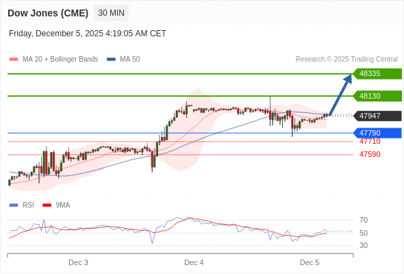 在 47790 之上,看涨,目标价位为 48130 ,然后为 48335 。