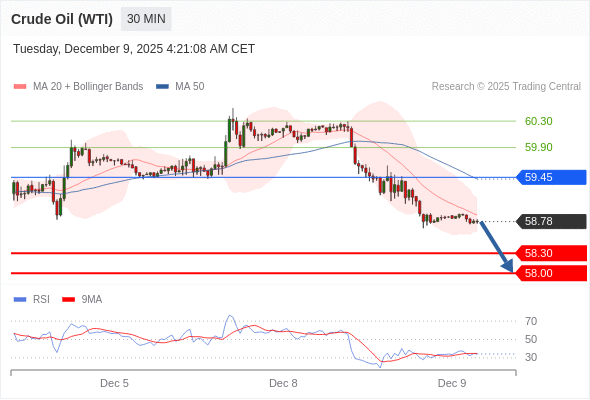 在 59.45 之下,看跌,目标价位为 58.30 ,然后为 58.00 。