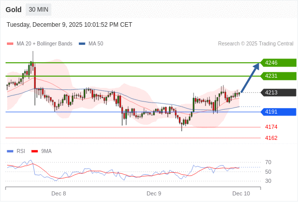在 4191 之上,看涨,目标价位为 4231 ,然后为 4246 。