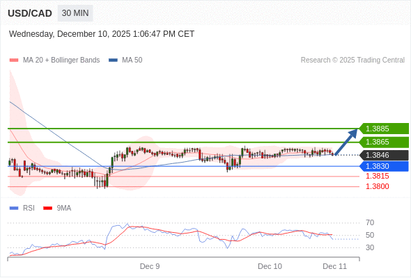在 1.3830 之上,看涨,目标价位为 1.3865 ,然后为 1.3885 。