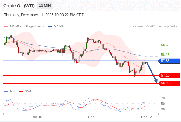 在 57.85 之下,看跌,目标价位为 57.10 ,然后为 56.70 。