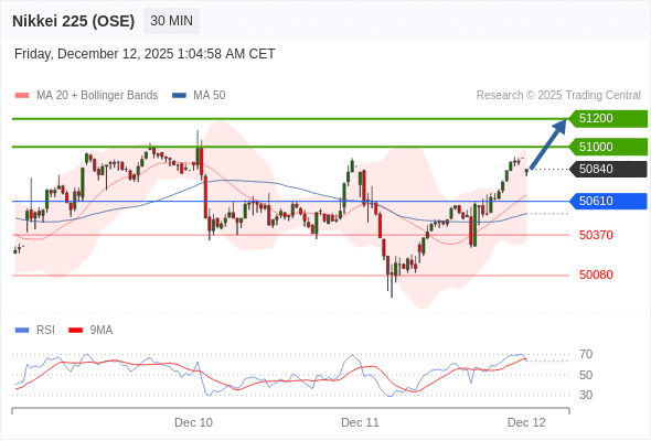 在 50610 之上,看涨,目标价位为 51000 ,然后为 51200 。