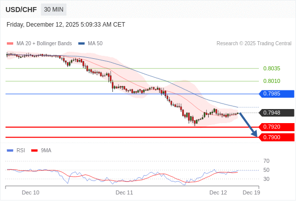 交易策略: 在 0.7985 之下,看跌,目标价位为 0.7920 ,然后为 0.7900 。