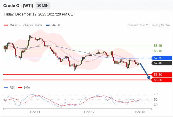 在 57.75 之下,看跌,目标价位为 56.80 ,然后为 56.50 。