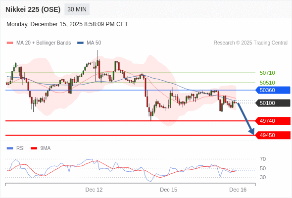 交易策略: 在 50360 之下,看跌,目标价位为 49740 ,然后为 49450 。