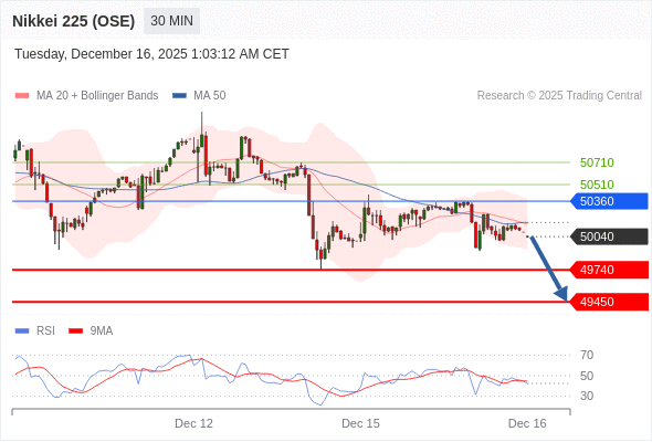 交易策略: 在 50360 之下,看跌,目标价位为 49740 ,然后为 49450 。