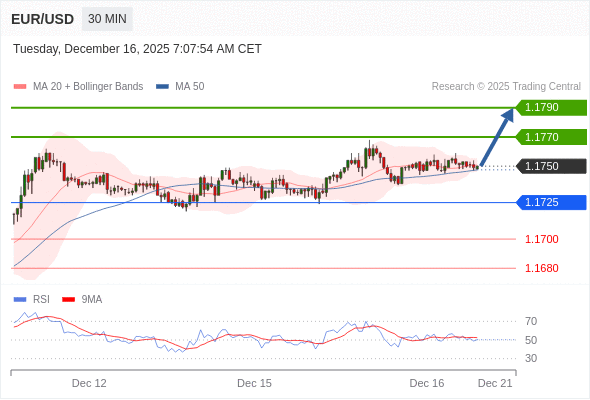 在 1.1725 之上,看涨,目标价位为 1.1770 ,然后为 1.1790 。