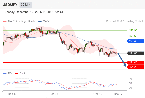 在 155.40 之下,看跌,目标价位为 154.40 ,然后为 154.20 。