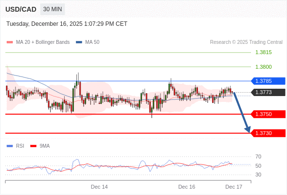 在 1.3785 之下,看跌,目标价位为 1.3750 ,然后为 1.3730 。