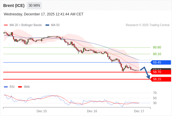 在 59.45 之下,看跌,目标价位为 58.70 ,然后为 58.15 。