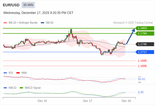 交易策略: 看涨,当 1.1717 为支撑位。