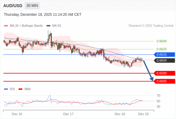 交易策略: 在 0.6615 之下,看跌,目标价位为 0.6580 ,然后为 0.6565 。