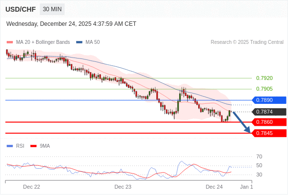 在 0.7890 之下,看跌,目标价位为 0.7860 ,然后为 0.7845 。