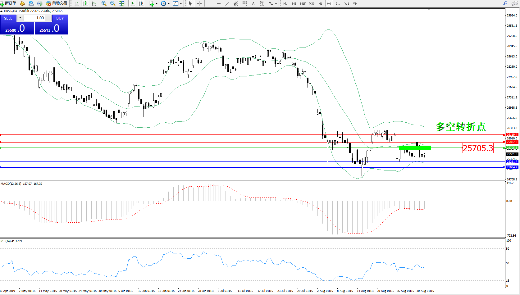 香港恒生指数92日(周一)收盘下跌98.18点,跌幅0.38%,报25626.55点;港股焦点将集中于经济数据身上。内地制造业PMI数据逊预期,本周美国亦会公布就业数据,料会对美国经济以至联储局月中议息有更大启示。依然对后市看法审慎,回落至25000点机会相当高,亦重申现水平值搏率不高,部署上仍以逢反弹减持。港股早上低开95点后,虽曾收窄跌幅,唯市场沽压稍大。随后再逐步向下扩大跌幅,恒指低见25502,最多跌222点。恒指在8月份跌2053点,跌幅近7.4%,为全球股市最差的市场。主要是受到外围及本土坏消息所影响。从目前来看,总体局势趋于平淡。美股业绩期逐渐进入尾声,所以接下来由业绩主导的上涨也基本不会出现。