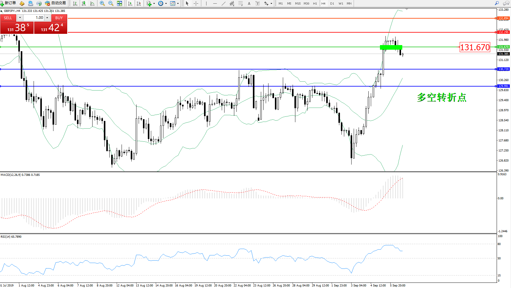 技术点评:低位V型反转拉升上行,延续布林带指标上轨持续上攻后受压下行,多头出现短期疲软态势,或将有进一步下行走势,但仍处于中上轨区间震荡,MACD指标多头区域高位出现回撤,RSI指标在即将触及80均衡线位置后出现转势下移;