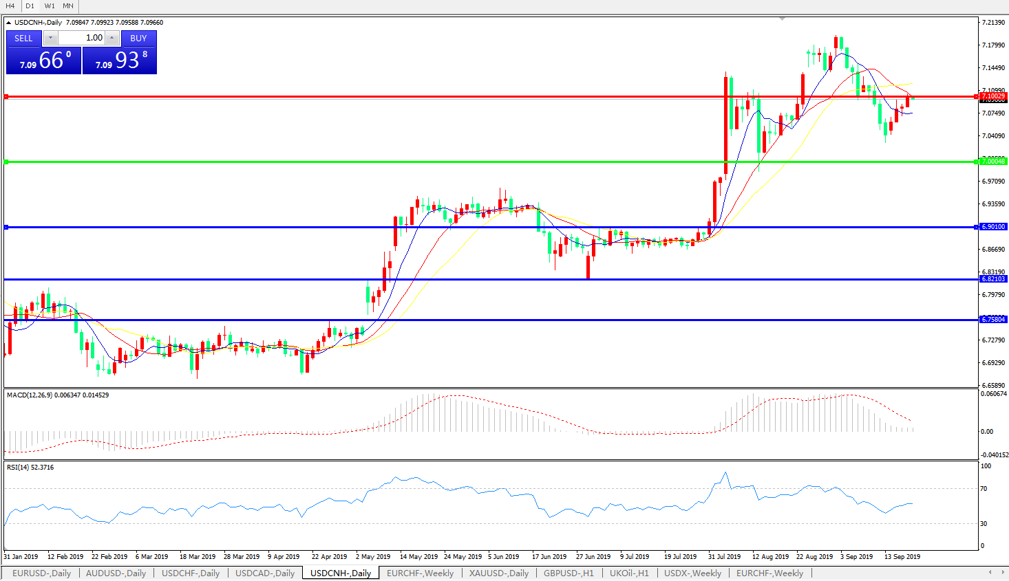 在岸人民币周四收盘反弹,日内跌幅缩窄至108点,因午后美元指数回吐大部分昨日涨幅,人民币也顺势收复部分失地,7.1元关口失而复得,但仍创911日以来新低;中间价亦小跌至一周新低,不过从这两日表现看,中间价很可能重回横盘走势。 交易员称,美联储如期降息但会后声明不如预期鸽派,部分提振美元人气,但午后美指转弱,客盘结汇需求开始涌出,助力收复部分早盘跌幅;而中间价重回窄幅波动也表明监管层维稳态度,人民币续贬空间料有限。国庆假日前料在当前区间宽幅震荡,但不会出现剧烈波动。美联储周三一如预期降息25基点,以帮助维持创纪录的经济扩张。同时,美联储主席鲍威尔形容美国经济前景“良好”,称决定降息是为了“防范当前的风险”。他的谈话没有市场预期那么偏鸽派,这带动债券收益率上扬,起初也提振美元走高。