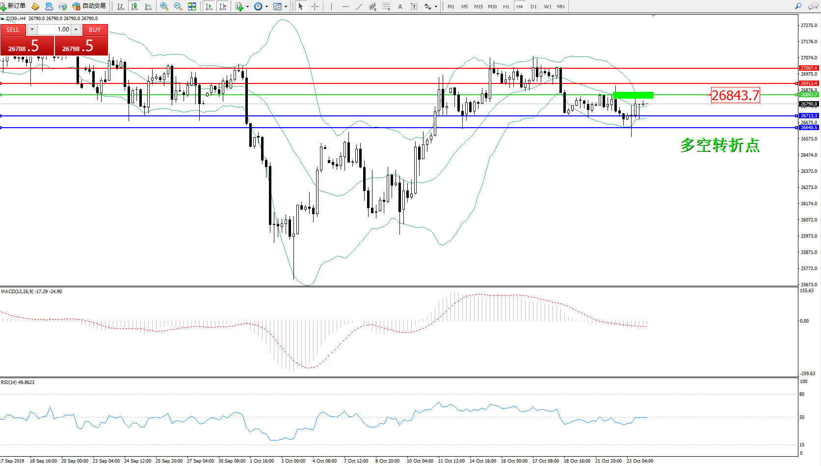 技术点评:高位震荡下移后布林带指标不断呈收口走势,在跌破下轨后又再次继续拉升,关注上轨附近节点,底部多头仍有拉升潜力,破位布林带指标上轨有破位上行迹象,MACD指标处于0轴线下方弱势徘徊中,RSI指标处于50均衡线位置持续整理;