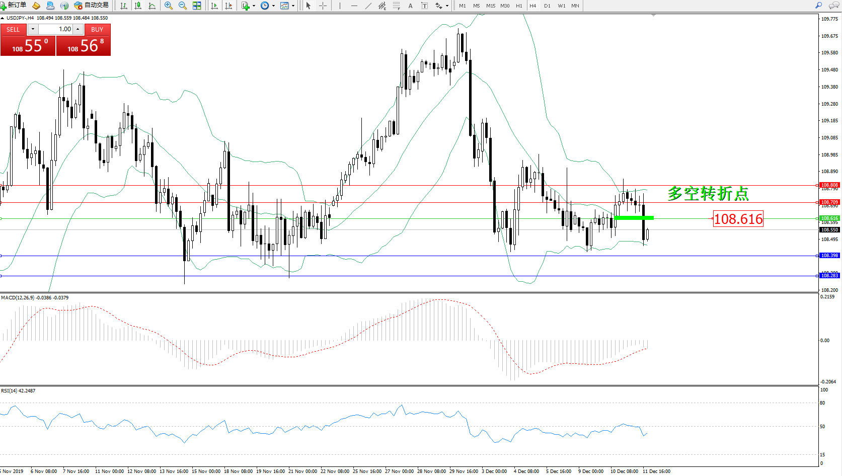 交易策略:108.616下方看跌,目标108.398108.283