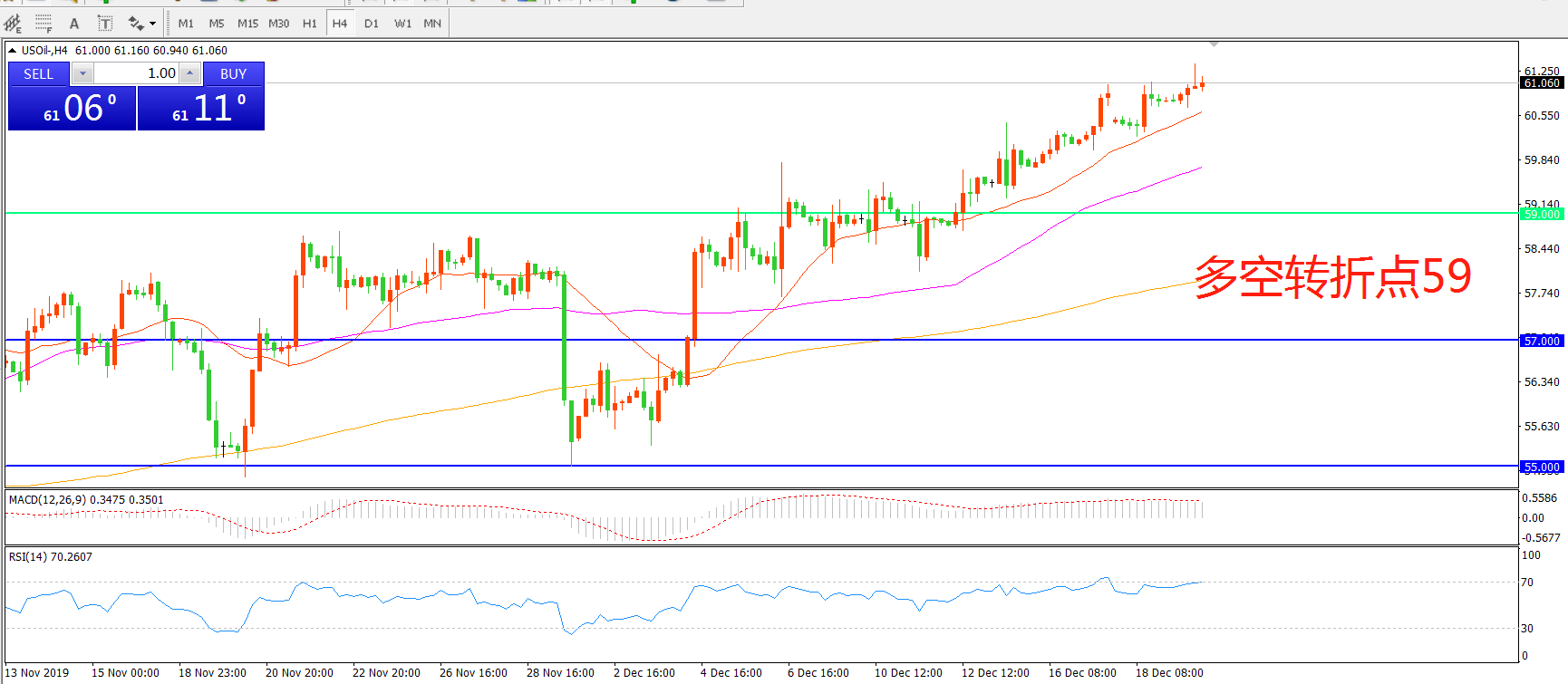 周四(12月19日),由于邻近圣诞节假期,市场交投十分清淡,EIA数据利好持续发酵,美国WTI原油震荡走高,收报61.02美元/桶。根据中国商务部的消息,双方经贸团队正在就协议签署等后续工作密切沟通,后续贸易谈判的消息仍需重点关注,据中国财政部网站周四消息显示,经国务院批准,国务院关税税则委员会公布第一批对美加征关税商品第二次排除清单,对第一批对美加征关税商品,第二次排除部分商品中就包括了大量包括原油制品。