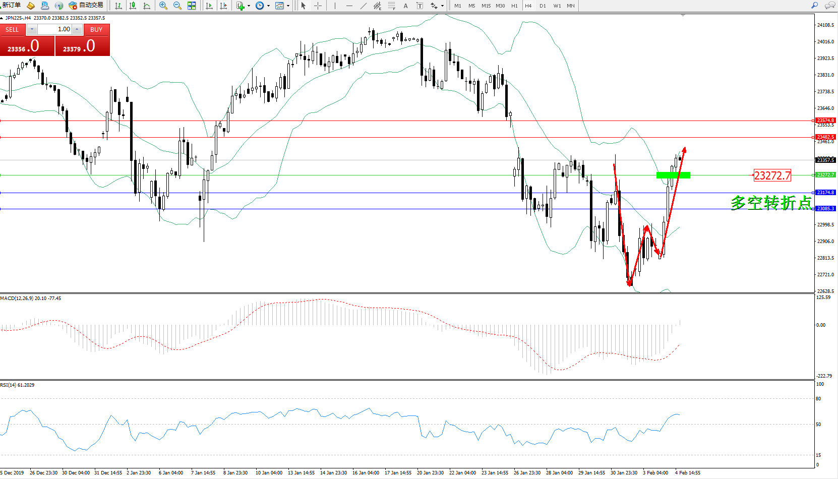 日经225指数24日(周二)收盘上涨94.06点,涨幅0.41%,报23066.00点。因利空消息进一步得到消化后,全球恐慌情绪正开始消退,投资者且更押注美国总统特朗普在周三亚洲时段的国情咨文讲话中能释放出更多积极措辞;日本官员近期所释放的宽松基调,日本央行行长黑田东彦日内再度强调,如有必要,将毫不犹豫恣地强化宽松行动,日本央行正收集有关疫情影响的各种信息。全球风险情绪目前更加谨慎。如有需要将毫不犹豫实施更加宽松的政策。将最大限度地关注经济、物价和金融市场。目前实施更宽松的政策还为时尚早。