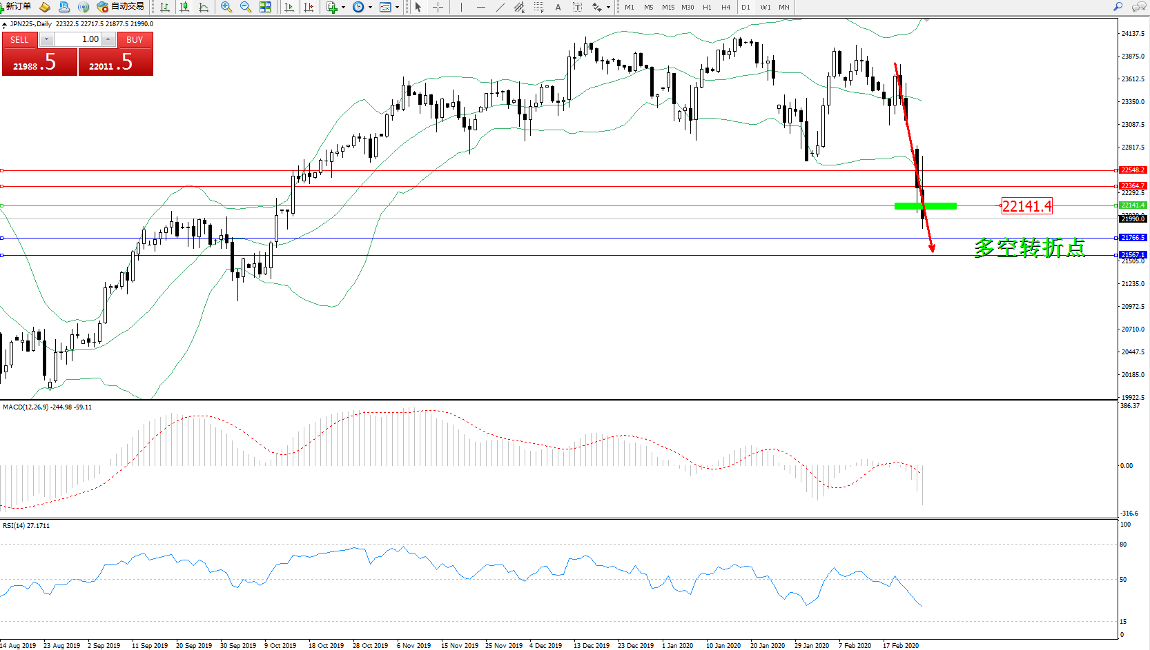 日经225指数225日(周二)收盘下跌784.74点,跌幅3.36%,报22602.00点。日本2019年第四季度实际GDP较第三季度收缩6.3%,远低于预期,并且是自上一次于20144月上调消费税以来的最大降幅。日本最近的经济数据令人失望,并表明在201910月上调消费税和台风“双重打击”之后,日本经济遭受的损失比预期的要多得多。实际私人最终需求环比下降达到惊人的11.7%,该指标可以反映针对库存变化进行调整的私人部门的消费和投资,考虑到它的下降幅度几乎是GDP总值下降幅度的两倍,这也令市场感到担忧。不过庆幸的是其降幅小于2014年上调消费税后下降的水平。