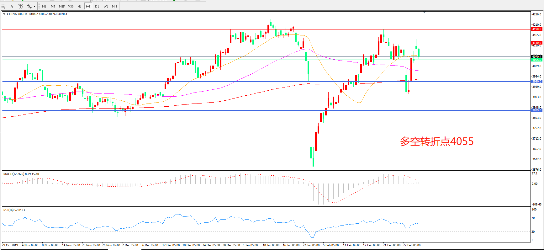 多空转折点:4055.00